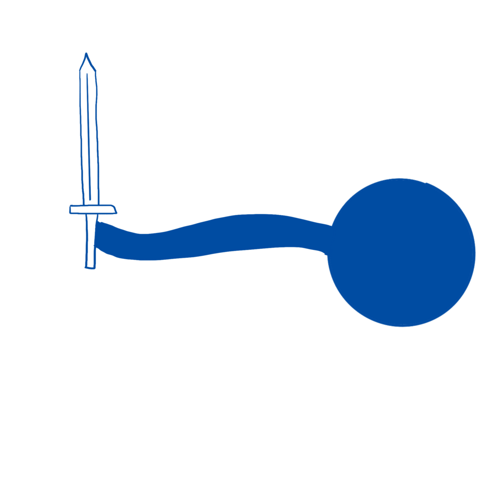 Before the ball throws its arm out to grab the sword, it stretches in the opposite direction to indicate that something is about to happen.