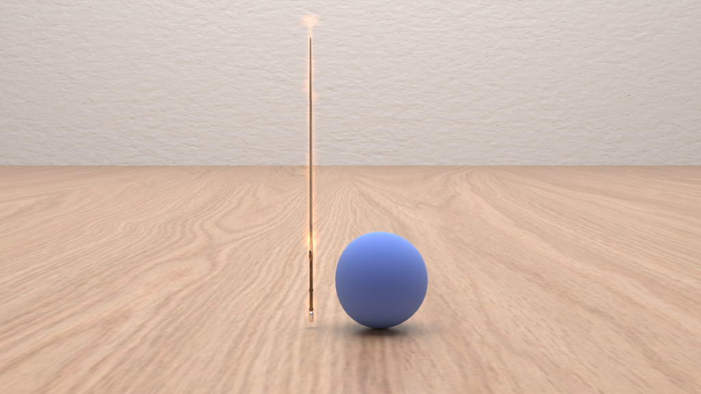 After the ball punches the sword to turn it on, its side indents back into its body to show that the momentum is being absorbed.