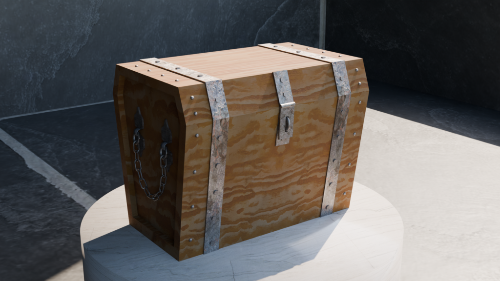 For this project, I modeled a treasure chest in 3D after this reference image.